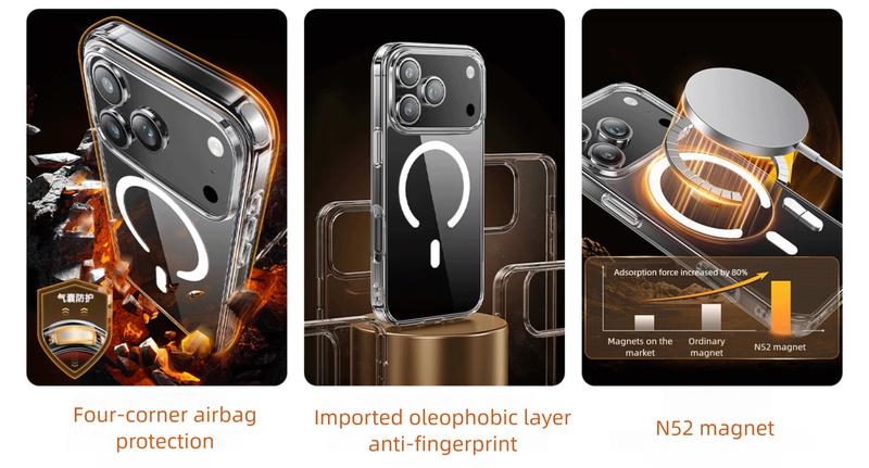 - 38 N52 Magnets for Ultra-Strong Magnetic Charging:Built with 38 powerful N52 magnets, this case ensures ultra-secure attachment to magnetic chargers, car mounts, and accessories. Enjoy fast charging without removing the case
