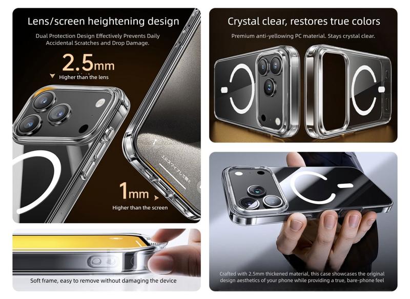 - Eco-Friendly Material with Ultra-Clear High Transparency:Made with eco-friendly materials that maintain crystal-clear transparency, showcasing your phone’s original design while offering reliable protection
